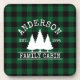 Family Name Cabin Green Buffalo Plaid with Pine Trees Coaster