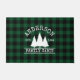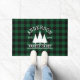 Family Name Cabin Green Buffalo Plaid with Pine Trees Door Mat