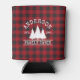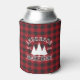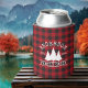 Family Name Cabin Red Buffalo Plaid with Pine Trees Can Cooler