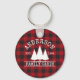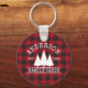 Family Name Cabin Red Buffalo Plaid with Pine Trees Keychain