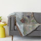 A quality printed throw has its advantages. This is a much finer weave throw than its loopier cousins, and though lighter, it is worth the investment for custom room accessorizing. The back is much prettier than the typical brown, and the fringe on the long sides very vivid, the selvage nicely done. Before photographing, I washed the throw in cold water, delicate, with a thicker woven throw the same size. On tumble dry low, this throw was dry in half the time as the other. This is a very practical quality if you use throws for furniture covers or to wrap up in frequently. The sleekness of the fabric makes it a great layer for accenting or protecting without the feeling of sitting on too much stuff. Perfect for napping or when you feel a light chill coming on. The color printing is beautiful and on this fabric, matched the design and color of my Photoshop image. This is an advantage for blending room fabrics and colors. The fringe on the short sides prints the colors from the design image and therefore varies from the side fringe. I streaked a white fractal line through the plaid pattern to give the illusion of weaving. This printed as crisp as an illusory thread, and put some white in the short side fringe, showing another advantage of print vs loomed- for artistic purposes, line lines, detail, and color integrity can be planned and preserved. My loomed throws have color limitations and more of a needlepoint texture. Print throws reproduce an exact image. The throw felt a little stiff straight out of the package, but this went away in the first delicate wash. Of course I searched the wash water for ink or bleeding and there was none.
