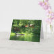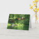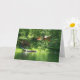 Blank Greeting card with photo of a hidden cabin on a lake.