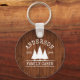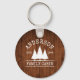 Family Name Cabin Rustic Wood with Pine Trees Keychain