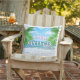 This outdoor accent throw pillow is shown with a Cabo San Lucas beach palm print.