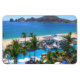 Magnet shown with a photo print of a beach resort in Cabo San Lucas, Mexico.