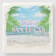 This marble stone coaster set is shown with a Cabo San Lucas beach palm print.