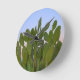 The clock did not take as long to arrive as I thought it might and was extremely well packaged. I didn't do the measurements so I didn't realize it is a little smaller than the average clock but that does not matter (just make sure you check if that's important to you).It is really nifty! It seems very solid and well made not flimsy at all. It has been going well and has kept good time in its few weeks on my wall. Nice product. Gets noticed too! Nicer in real life than the picture but true to the picture