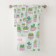 Cacti Succulents Plants Doodles Pattern Name Bath Towel Set
