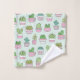 Doodles of cacti, succulents and plants in assortment of pots. Colour palette of pink and green. Perfect for her who loves garden, botanical and plants! Personalise with name in text template provided for the hand and bath towel.