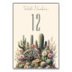 Add a touch of rustic elegance to your wedding decor with this table number sign, featuring a beautiful arrangement of desert cacti and a vintage wagon wheel in a watercolor style. The nature-inspired design brings warmth and charm to your tables, making it perfect for a desert, rustic, or boho-themed wedding. Customise the text or table number on the card to suit your needs. Ideal for Southwestern, rustic, outdoor, or country-style celebrations. Matches beautifully with wedding stationery and signage from the same cactus & wagon wheel collection for a cohesive event aesthetic. Guide your guests in style with this charming cactus and wagon wheel table number sign—where love meets the spirit of the Southwest.