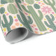 Explore Cactus Bloom Bliss Wrapping Paper, featuring delightful cacti and scattered flowers on a serene white background. Perfect for adding a touch of natural charm to your gifts.