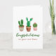 Modern greeting card watercolor cactus design. Text reads on the card "Congratulations on your new home".