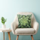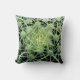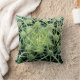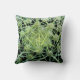 This throw pillow takes you right into the centre of an exotic cactus pattern. Green and white spines radiate in a circular abstract design on a black background.