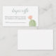 A beautiful desert themed Diaper Raffle enclosure card. Features a delicate watercolor cactus illustration in soothing shades of pink and green. Perfect for a modern southwestern or boho baby shower. Coordinates perfectly with the Cactus Baby Shower Invitation collection. Select the "Personalise" button if you would like to add different wording.