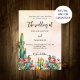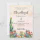 A rustic rose gold blush pink gradient background decorated with colourful floral cacti. Personalise and your names and details.