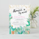A modern, trendy and cool spring summer virtual baby shower by mail design featuring an elegant script font typography with hand painted cactus, succulent, cacti pattern watercolor and gold glitter confetti. Perfect for baby shower, bridal shower or gender reveal long distance event.
