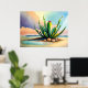 A lush cactus painting showcases a desert scene, where cacti thrive amidst rocky terrain. Created using delicate watercolors, the artwork captures the hardy beauty of plants in their natural habitat. This portrayal of a desert oasis hints at the resourcefulness of life in arid regions, making it a compelling representation of the rugged yet captivating Western landscape.