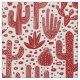 An original hand drawn pattern made up of a variety of cactus and succulent plant motifs in a desert like landscape.