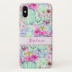 This phone cover features a watercolor style cactus and succulents design. Personalise it with a name.