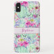 This phone cover features a watercolor style cactus and succulents design. Personalise it with a name.