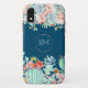This phone case features a modern floral design with faux gold monogram on an ocean blue background with cactus, succulent and coral flowers. Personalise it with your own initials.