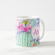 This mug features watercolor succulents and cactus flowers. Personalise the monogram with your initial. Please visit the collection page in our store to see the full range of matching products featuring this design.