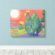 This wrapped canvas features a painting of a southwest desert landcsape scene near sunset.Very colourful, cheerful, and warming!