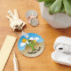 Cartoon of smiling cactus with sunglasses in desert landscape holding a beer mug and giving thumbs up. Custom text on both sides.