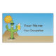Cartoon of smiling cactus with sunglasses in desert landscape holding a beer mug and giving thumbs up. Custom text fields for name and occupation.