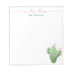 Cute green cactus with pink flowers notepad, white background. Personalised it with your own name. Great for teachers or any cactus loving friends.