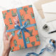 Trendy and modern style wrapping paper with cute botanical seamless pattern. Different flowering cactuses and succulents in blue pots hand drawn illustration on orange background.