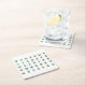 Trendy and modern style coaster with cute botanical illustration. Hand drawn 35 different flowering cactuses and succulents in blue pots.