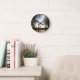 Wall Clock, 25.4 cm Round Black Wooden Frame