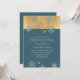 Chic winter wedding invitation done in a cadet blue colour with graphics of a golden foil look at the top and blue and gold snowflake accents. Personalise all text to suit your needs. Chose from many different card stock options for the look you like best. Matching products are available.