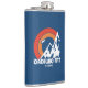 Well made flask, a little better than I had expected. Flask came in clear plastic box which gave it a nice presentation when I took it out of the zazzle packaging. Image is not printed on flask but on sticker. Don't know how this will hold up I haven't used it yet. This would make a Great gift! I plan to purchase more for friends! Cheers. I thought a little brighter than computer. Very crisp, writing wasn't