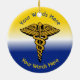This ornament is decorated on one side with a gold Caduceus and a place for custom words of your choosing and on the other Santa Claus carrying a bag of goodies. A great gift idea.
