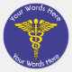 This custom sticker is decorated with a gold Caduceus that can be customised with a choice of words above and below that allow you to personalise it with the name of a person, place, position, etc.