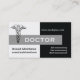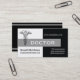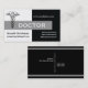 Caduceus doctor modern minimalist black, white, grey business card featuring a black caduceus doctor sign on white and black background and the text “DOCTOR” in a grey band. Perfect eye-catching professional medical business card design for doctors.