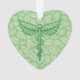 Single snake caduceus with mint leaves on light green seamless background. Custom text.