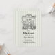 Cute whimsical hand drawn 'Cafe Bebe' French cafe inspired baby shower invite with a gender neutral sage striped background and a hand drawn illustration of a cafe in Paris.