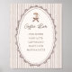 Cute and whimsical 'Cafe Bebe' French cafe inspired baby shower coffee bar sign with a soft brown striped background and a hand drawn illustration of a coffee cup with a brown bow - perfect for a gender neutral, coffee themed baby shower with a vintage, Parisian café style.