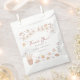 A baby shower favor bag to match our Cafe Bebe Baby Shower collection. This paper favor bag features a hand-painted frame of sweet treats, bread, and coffee. The illustrations include croissants, pan au chocolat, cinnamon rolls, pies, cake, cupcakes, baguettes, cherries, bows, coffee beans, and more. Ideal for a baby is brewing, Parisian patisserie, or coffee shop themed baby shower event. The text "thank you" is written in elegant calligraphy. Perfect for filling with candies, small gifts, or treats for your guests. View the collection linked on this page for the full baby shower bundle. Visit our store for more baby shower designs.