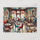This watercolor painting beautifully depicts an everyday scene in a small local cafe in Bronzeville, Chicago, emphasizing the neighbourhood's vibrant cultural heritage. The cafe exudes a cosy and inviting atmosphere with walls adorned with artwork celebrating African-American culture. The furniture, a unique mix of vintage and modern styles, creates a welcoming space that reflects the community's eclectic charm. The colour palette includes deep earth tones and vibrant splashes that mirror the rich history of Bronzeville. Patrons, representing a diverse cross-section of the community, are engaged in lively conversations, enjoying their coffee, or working on laptops. The backdrop of soft blues music enhances the laid-back vibe, making the cafe a perfect retreat in the heart of the city.