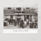 A superb photo from c1900 to1910 of a cafe street frontage in France. I've no idea where it is, it could be Paris or a large town. There are two well dressed ladies with parasols, and a man, sitting outside at one table. At another are three men and a little boy, standing in the background are two staff of the cafe bar, and a young lad. Next door, probably part of the same establishment, is a coiffure (hairdresser) with two groups of people standing outside. The ladies have a tiny dog. Above the salon there is a sign saying Archier, and in the centre, Arrivage d'huitres tous les samedis - oysters arriving every Saturday. Above the cafe and salon are three windows with a balcony on the middle one. The people on the balcony have been cropped but you can still see the face of a small boy, and in the right hand window, someone is holding a newspaper with the word Journal on it. On the right of the Cafe Bar sign, is an old painted sign, but I can only make out the words cafe, vins and possibly Chez Alise.