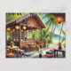 This painting depicts a cosy, tropical coffeeshop on a quiet street in Koh Samui, just steps from the beach. The cafe’s rustic charm is highlighted by bamboo furniture, colourful cushions, and wooden decor that blends seamlessly with the surrounding greenery. String lights and lanterns hang above, creating a soft, inviting glow, while tropical plants adorn both the interior and exterior. Through open windows, a gentle ocean breeze flows, and the soothing sound of waves can almost be heard. The scene is framed by swaying palm trees and a distant glimpse of the sparkling ocean, embodying the island's laid-back charm.