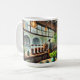 The watercolor painting captures the tranquil yet vibrant atmosphere of a historic coffee shop in Tainan. The café's interior features exposed red brick walls and vintage wooden furniture illuminated by the warm amber glow of hanging Edison bulbs. Large black-framed glass windows let in soft natural light, while leafy potted plants add lush green accents. A polished wooden counter with intricate carvings displays jars of local pastries and coffee beans. In the foreground, a barista in a linen apron carefully prepares pour-over coffee using traditional ceramic tools. At a round table, two elderly men converse over cups of oolong tea, while a young woman in a floral dress sketches the café’s vintage decor. The earthy tones of red brick and dark wood are beautifully contrasted by teal and mustard ceramic cups. Outside, the narrow streets and stone-paved alleyways of Tainan enhance the charm of this harmonious blend of tradition and modern café culture.
