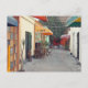 A colourful back street in Lima Peru. During the lunch rush, the little street is crowded with people eating at the little tables. Later in the afternoon, the scene is peaceful and the bright colours of red, orange, yellow and turquoise make for an interesting scene.