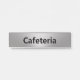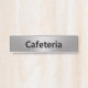This faux silver door sign has a brushed metal look. (The look is artwork, not foil.) There's also black display text that you can edit to show a custom message. (Shown: Cafeteria)