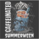 Iced coffee meets creepy cool in this Summerween mashup. A skeleton hand drops a straw into a skull-shaped mug, filled with cold brew and surrounded by spiderwebs and grunge textures. From the gothic detailing to the caffeine-fuelled energy, this design blends spooky season with summer heat in a bold way.