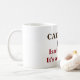 A coffee mug with a funny quote. Caffeine isn't a drug, it's a vitamin.